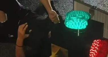 وقع الحادث، الذي وصفه البعض بأنه “مشهد من فيلم كوميدي”، بعد اصطدام مباشر أدى إلى أن يصبح رأس الرجل محشوراً داخل الإشارة.