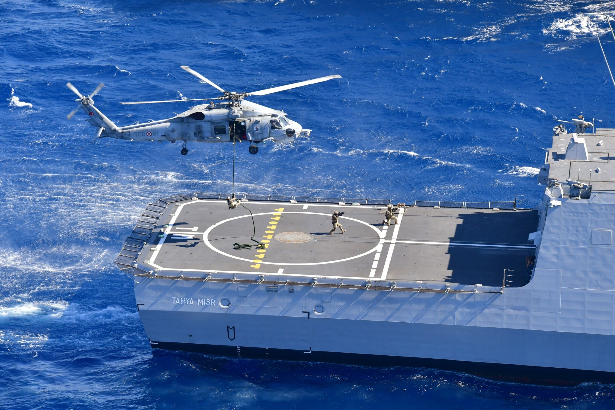 - تبادل إقلاع وهبوط الطائرات الهليكوبتر على أسطح القطع البحرية.