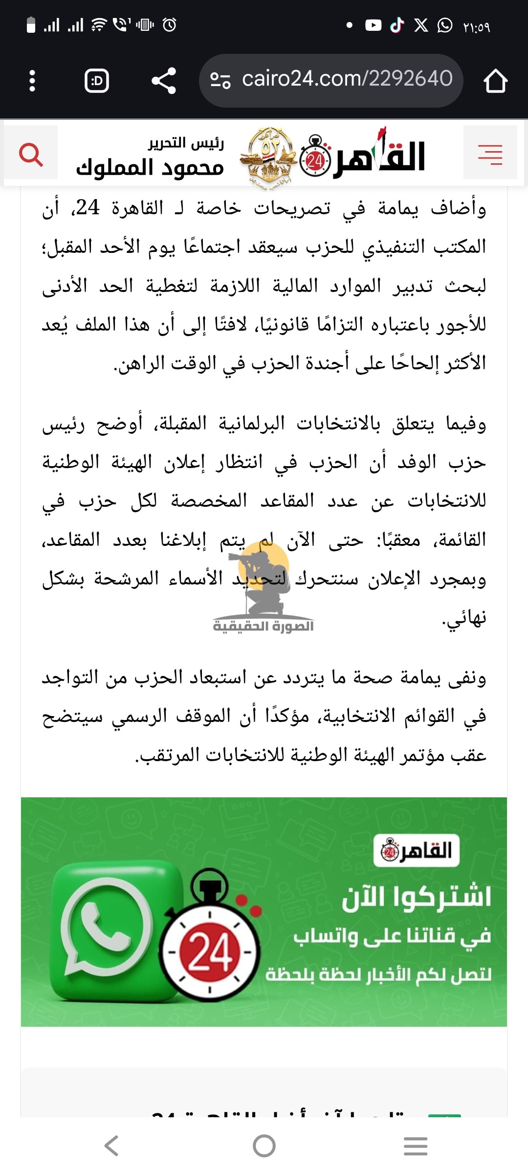 وقالت المصادر لـ الصورة الحقيقية إن حديث رئيس الوفد أن الحزب في انتظار إعلان الهيئة الوطنية للانتخابات عن عدد المقاعد المخصصة لكل حزب في القائمة “مش صحيح”، لأن القانون محدد إعداد وليس حصص للأحزاب، وبالتالى ده أمر غير خاص بالهيئة.