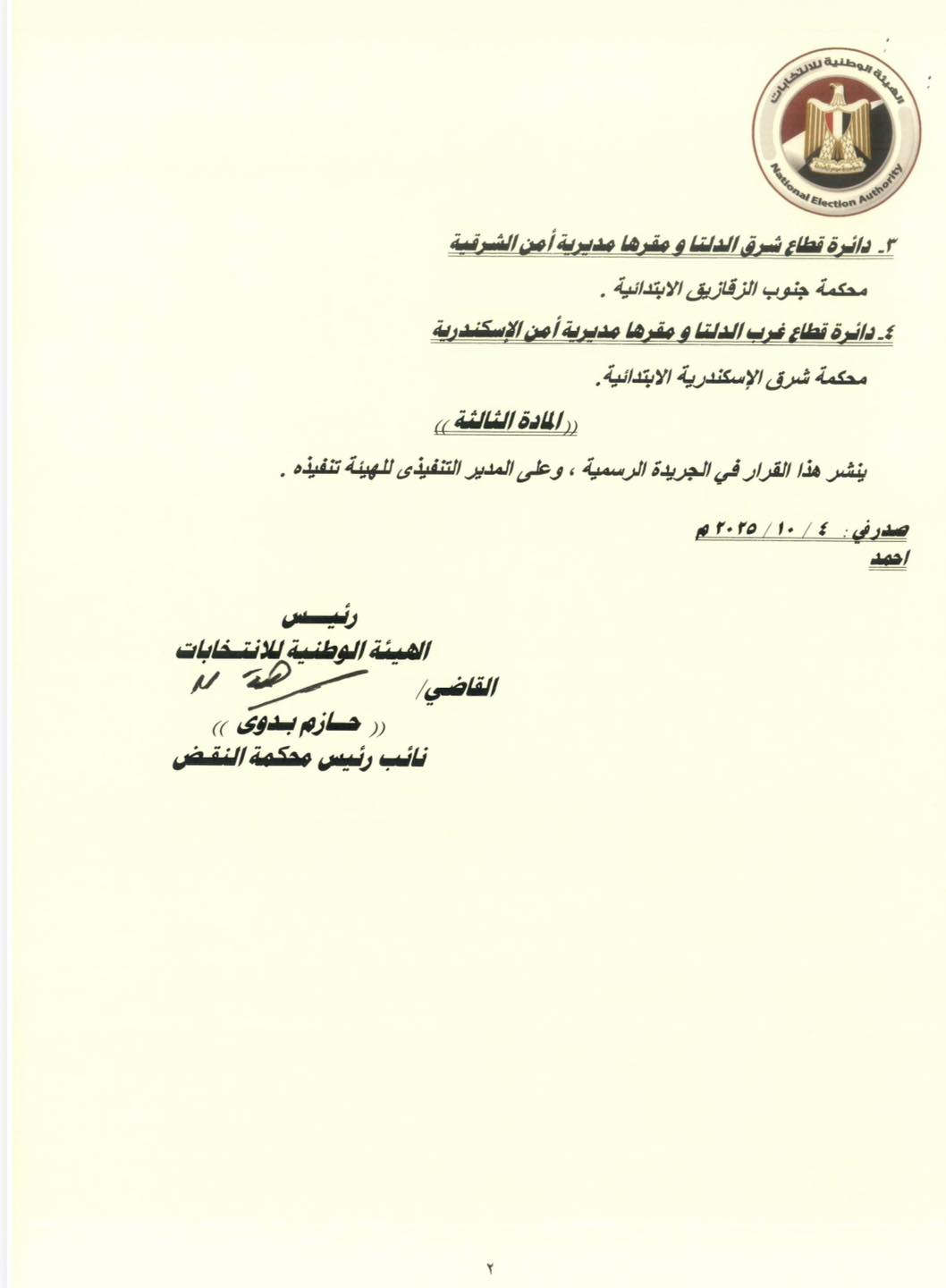 4. القطاع الرابع (غرب الدلتا): يتم تلقي الطلبات في محكمة شرق الإسكندرية الابتدائية.