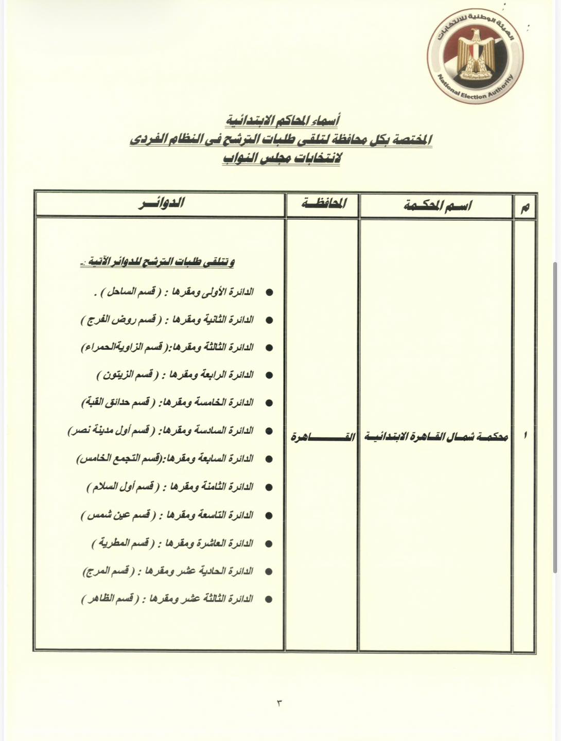 توزيع المحاكم لمرشحي النظام الفردي:
