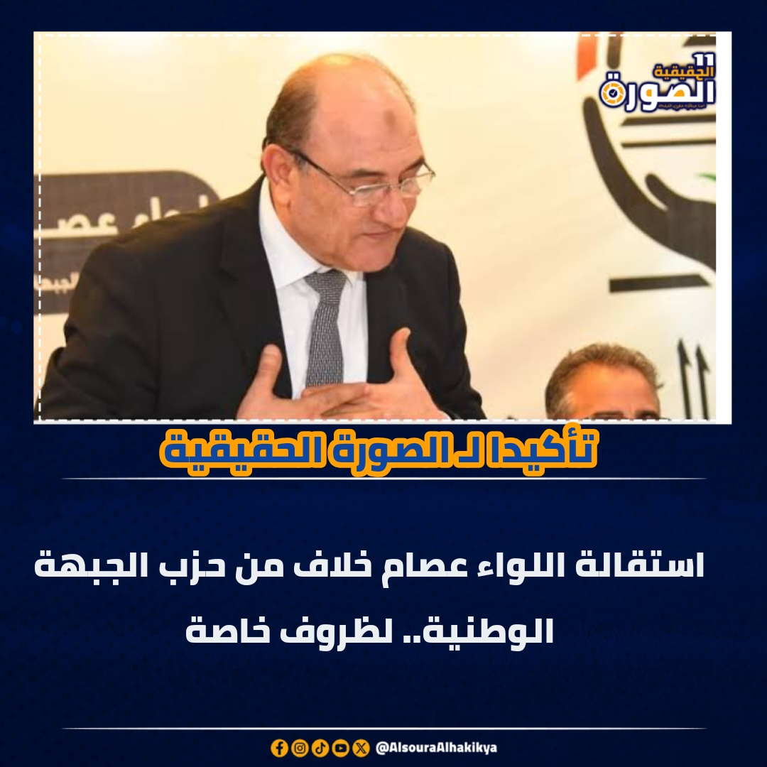 تأكيدا لما نشره موقع الصورة الحقيقية، أكد اللواء عصام خلاف أمين مساعد حزب الجبهة الوطنية في بني سويف تقديمه استقالته من أمانة وعضوية الحزب.