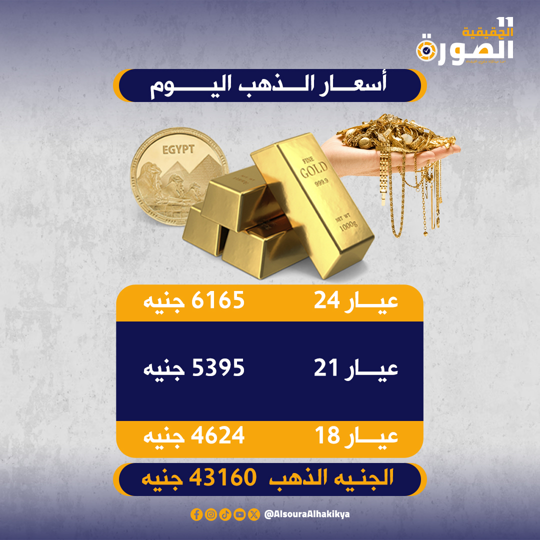 كما ارتفع سعر الجنيه الذهب ليصل إلى 43160 جنيهاً للبيع، و 42960 جنيهاً للشراء. وعلى الصعيد العالمي، وصل سعر أونصة الذهب في السوق المصري إلى 4018.21 دولار للبيع، و 4016.71 دولار للشراء.