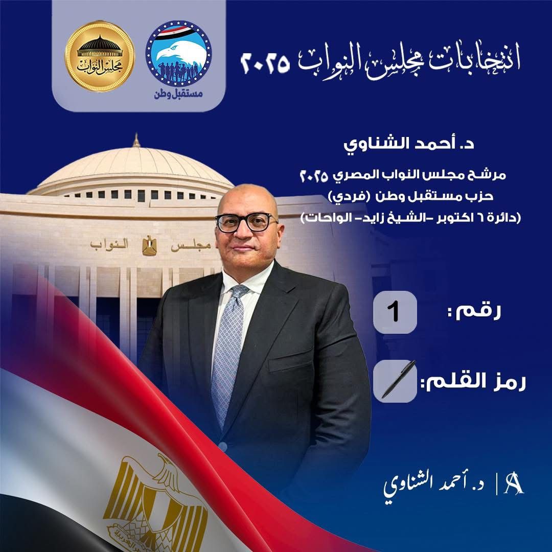 أعلن الدكتور أحمد الشناوي، أمين أمانة الإسكان بحزب مستقبل وطن بالجيزة، تقدمه بأوراق ترشحه لخوض انتخابات مجلس النواب2025 على النظام الفردي بدائرة 6 أكتوبر – الشيخ زايد – الواحات، عن حزب مستقبل وطن، موضحا أنه حصل على رمزا انتخابيا “القلم” وحمل رقم “واحد”في السباق الانتخابي، مؤكدًا أن قراره يأتي من منطلق وطني ومسؤولية مجتمعية تجاه الدولة والمواطن، ودعمًا لمسيرة التنمية والبناء التي تقودها القيادة السياسية بقيادة الرئيس عبد الفتاح السيسي.