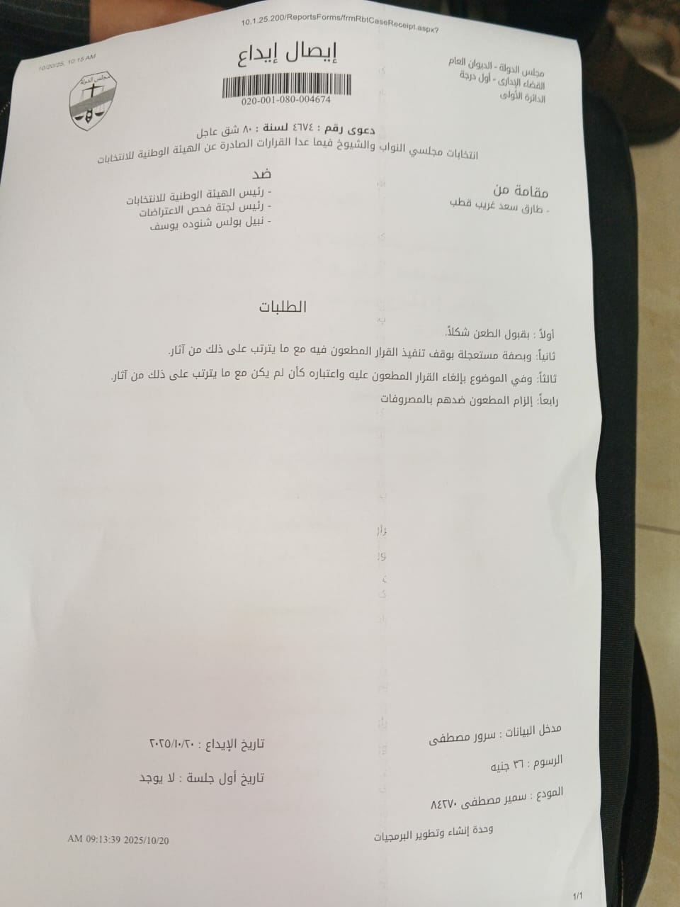 ويطالب الطعن، بصفة عاجلة، بإلغاء قرار قبول ترشيح نبيل بولس واعتباره باطلاً، وذلك حفاظًا على نزاهة العملية الانتخابية وحقوق الناخبين، قبل بدء الانتخابات المقررة.