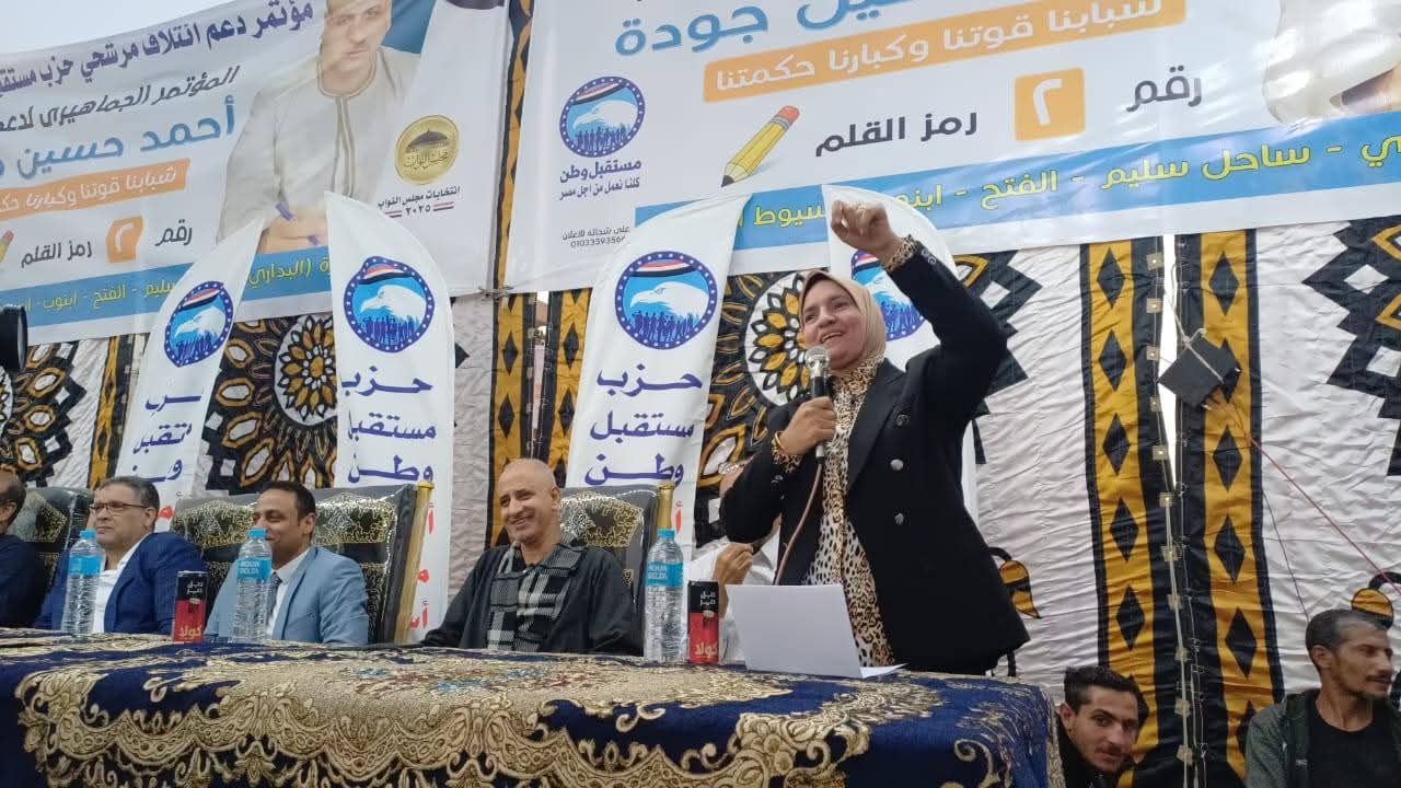 نظم حزب مستقبل وطن بمحافظة أسيوط أول مؤتمراته الجماهيرية لدعم ائتلاف مرشحي الحزب لانتخابات مجلس النواب 2025، وذلك بدائرة الشرق (الفتح – أبنوب – ساحل سليم – البداري – أسيوط الجديدة)، وسط حضور جماهيري كبير من أعضاء الحزب والمواطنين. تمام مركز شباب الفتح