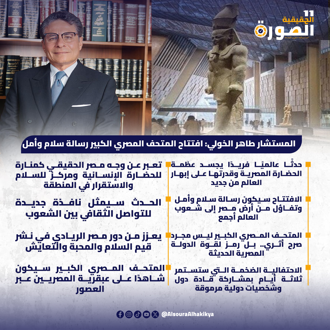 وأضاف الخولي في تصريحات صحفية له ، أن المتحف المصري الكبير ليس مجرد صرح أثري، بل هو رمز لقوة الدولة المصرية الحديثة، التي نجحت في أن تصون ماضيها العريق وتبني حاضرها المزدهر، في توازن يعكس روح الجمهورية الجديدة القائمة على الإبداع والإنجاز.