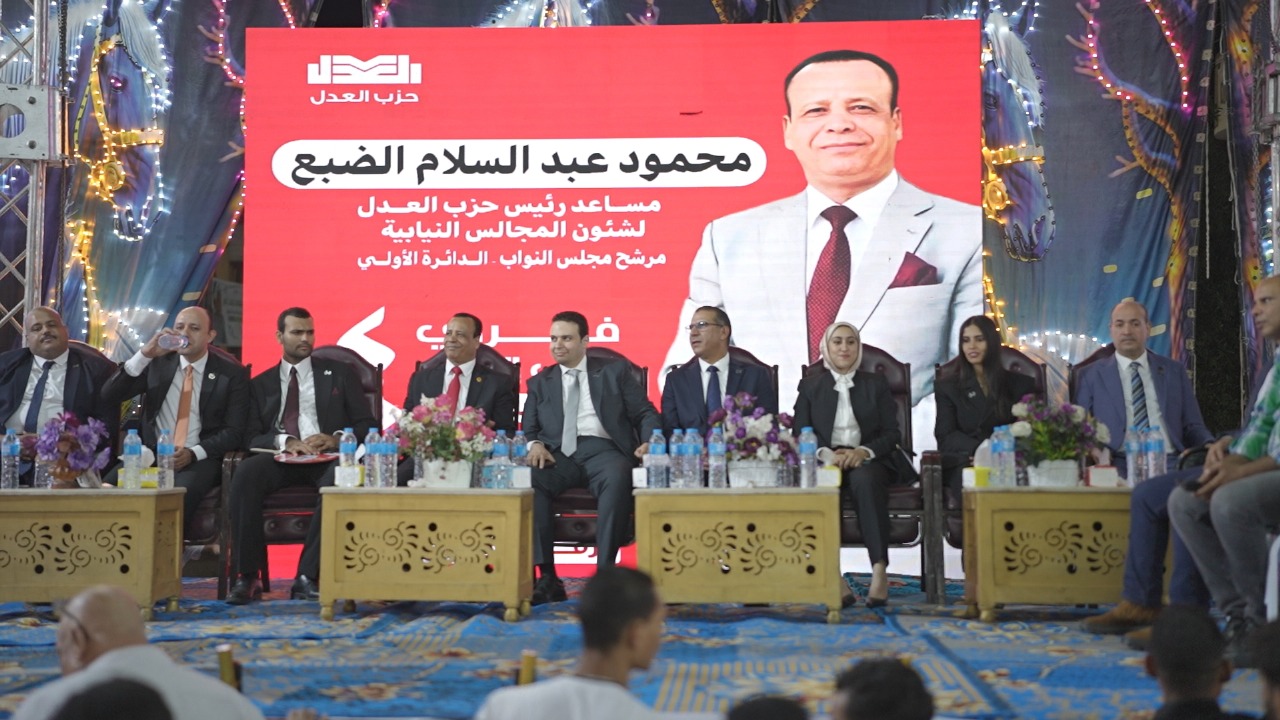 عقد حزب العدل مؤتمرا حاشدا بمدينة قنا لدعم مرشح الحزب الأستاذ محمود عبدالسلام الضبع مرشح دائرة بندر ومركز قنا برمز الحصان ورقم (4).