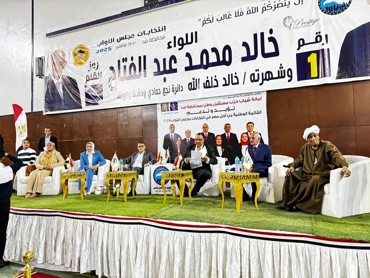 حضر المؤتمر الأستاذ محمد عبدالفتاح آدم، أمين حزب مستقبل وطن بمحافظة قنا ومرشح القائمة الوطنية، والنائب اللواء خالد خلف الله، مرشح الدائرة الثالثة (نجع حمادي – دشنا – الوقف)، والنائبتان رحاب الغول وسحر صدقي مرشحتا القائمة الوطنية، إلى جانب النائب عبدالفتاح دنقل والنائب نان نصرالله عضوي مجلس الشيوخ بمحافظة قنا، وعدد من القيادات الحزبية والشعبية، وجمع غفير من أبناء المحافظة الذين حرصوا على المشاركة في هذا اللقاء الحاشد.
