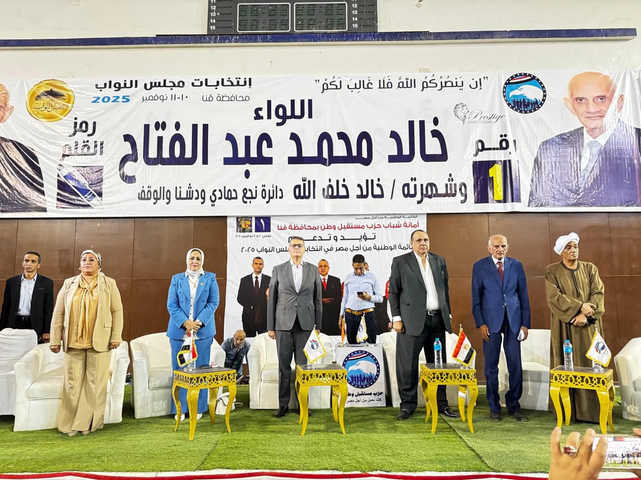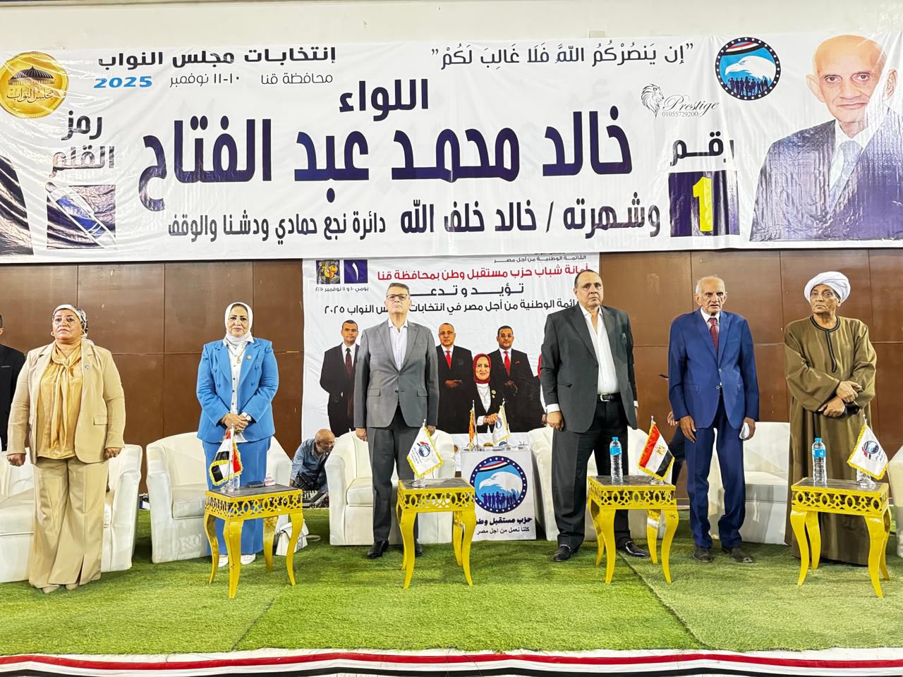 في إطار سلسلة فعاليات الانتفاضة الانتخابية لـ حزب مستقبل وطن بمحافظة قنا، شهد مركز نجع حمادي مؤتمرًا جماهيريًا كبيرًا لصالح اللواء خالد خلف الله، مرشح الحزب بالدائرة الثالثة. المؤتمر عُقِد في «الصالة المغطاة بالألمنيوم» بمدينة نجع حمادي، بحضور أضخم جماهيري للمنطقة، تأكيدًا على قدرة الحزب على الحشد والتنظيم في قلب الصعيد.