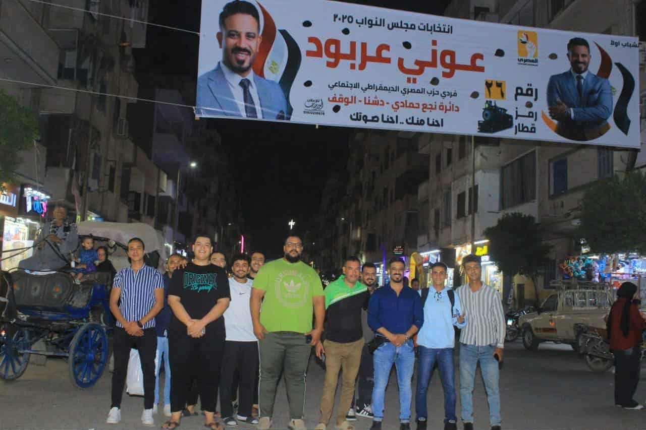 تشهد قرى نجع حمادي والوقف ودشنا، حراكًا جماهيريًا واسعًا لدعم المرشح الشاب عوني عربود، وذلك لايمانهم بتمثيل الشباب في دائرة تسيطر عليها التحالفات القبلية والعائلية منذ سنوات طويلة، يأتي ذلك وسط حضور قوي للمرشح الشاب وثقة أهالي الدائرة في تمثيل الشباب.