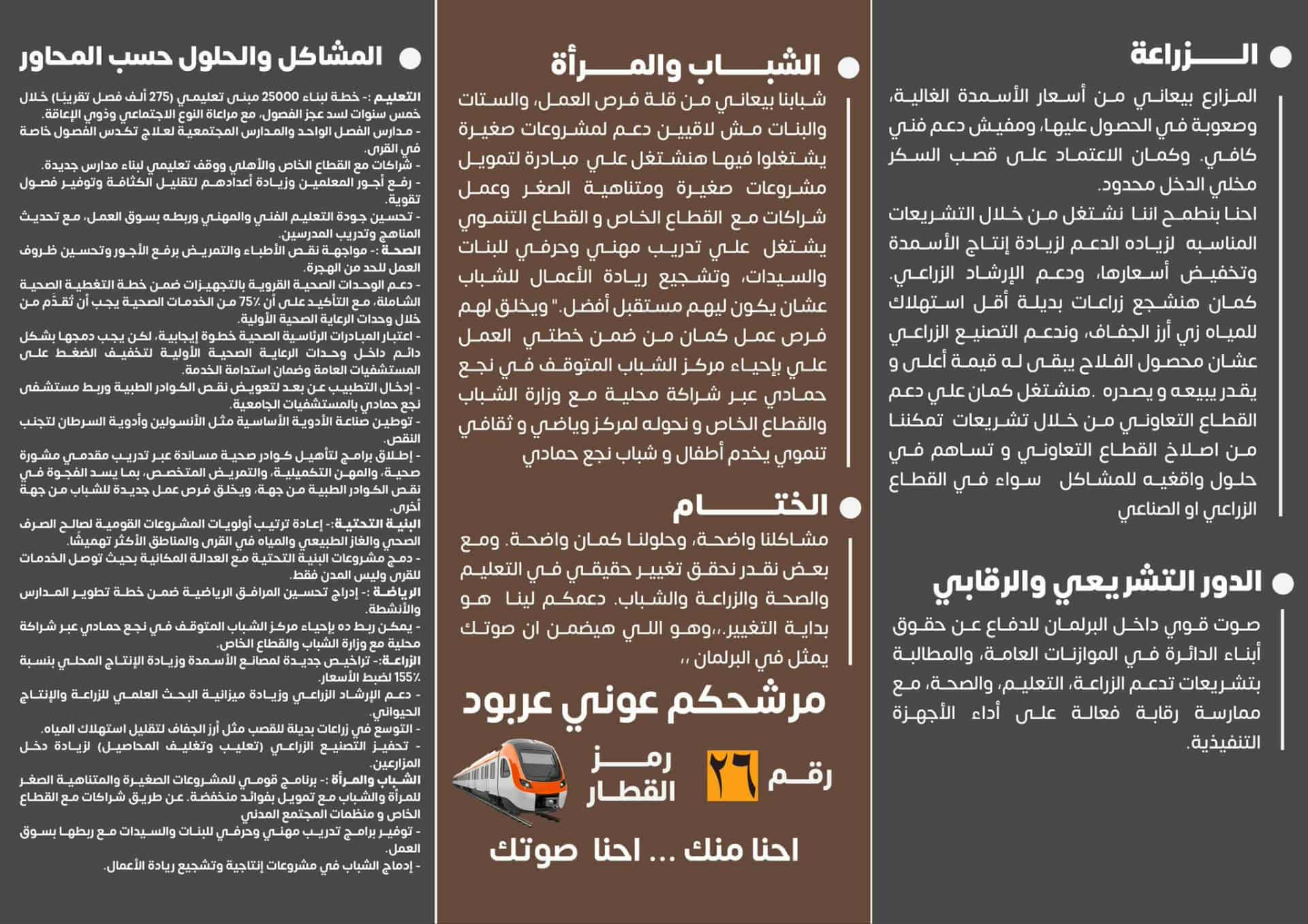 وأضاف عربود، أن عمله في مهنة المحاماة يمكنه من المشاركة التشريعية والنيابية التي تصب في صالح المواطن وبناء الدولة المصرية، فضلا عن رؤيته في المشاركة الفعالة في قطاع الصحة والتعليم.