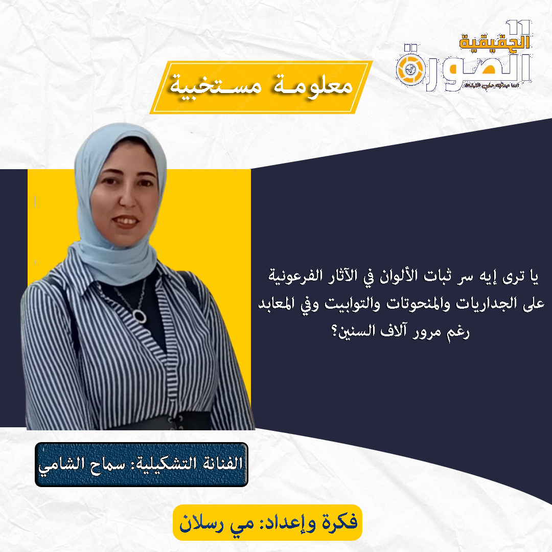 معلومة مستخبية.. أثارت الفنانة التشكيلية سماح الشامي تساؤلات الجمهور حول أحد أسرار الحضارة المصرية المبهرة، وهو سر ثبات الألوان على الأعمال والمنحوتات الفرعونية رغم مرور آلاف السنين، وذلك ضمن فقرتها “معلومة مستخبية” التي تُنشر عبر منصة #الصورة_الحقيقية.