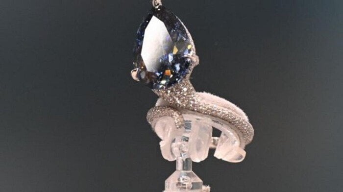 وتُعتبر هذه الماسة، ذات الشكل الكمثري الأنيق والمُرصعة بتصميم حلزوني، من أرقى الماسات الزرقاء التي حصلت على شهادة نقاء على الإطلاق، حيث يتميز حجمها ونقاؤها وكثافة لونها الأزرق الزاهي بجعلها من أفضل الماسات الفاخرة المعروضة هذا العام.