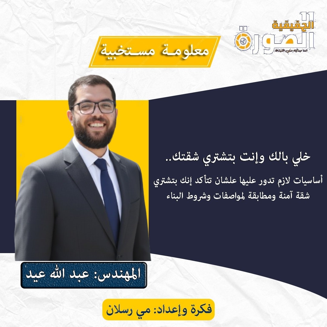 - الاستعانة بخبير: نصح المهندس عبد الله عيد بشدة بضرورة اصطحاب خبير أو مهندس مدني مختص أثناء معاينة الشقة؛ لأن عين المتخصص يمكنها الكشف عن العيوب الهيكلية التي قد تغيب عن المشتري العادي.