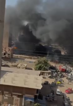 نشب حريق هائل قبل قليل في مخزن موكيت بمنطقة البراجيل التابعة لمركز أوسيم بمحافظة الجيزة.