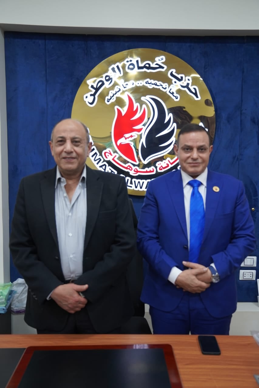 أجرى الفريق محمد عباس حلمي رئيس حزب حماة الوطن زيارة ميدانية موسعة لمحافظة سوهاج رافقه خلالها النائب أحمد بهاء شلبي رئيس الهيئة البرلمانية للحزب بمجلس النواب وذلك في إطار حرص القيادة المركزية على المتابعة المباشرة لأنشطة الحزب بالمحافظات حيث كان في استقبالهم النائب الدكتور مختار همام مرسي أمين عام الحزب بسوهاج.