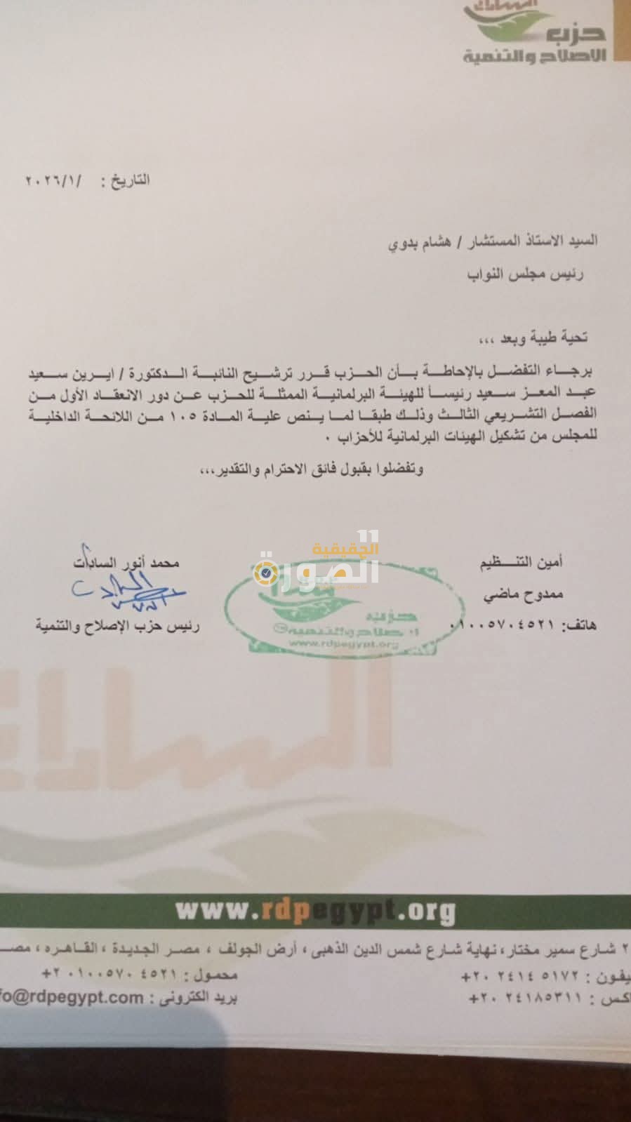 في سابقة هي الأولى من نوعها داخل أروقة البرلمان المصري، أعلن حزب الإصلاح والتنمية عن اختيار السيدة النائبة د. إيرين سعيد لتولي منصب رئيس الهيئة البرلمانية للحزب بمجلس النواب.