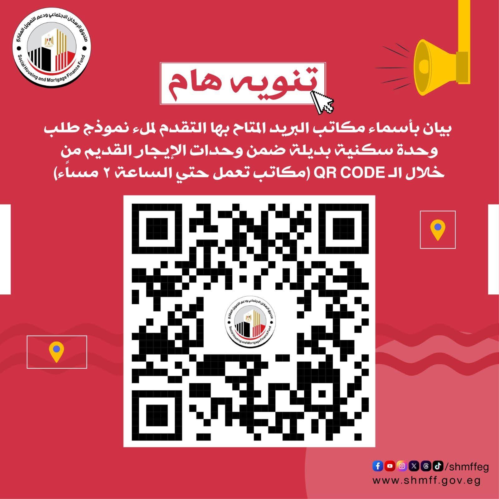وأضافت مي عبد الحميد، الرئيس التنفيذي لصندوق الإسكان الاجتماعي ودعم التمويل العقاري، أن بعض مكاتب البريد سوف يستمر العمل بها من ٩ صباحًا وحتى ٢ ظهرًا، ويمكن التعرف عليها من خلال الرابط https://bit.ly/4qAFiWV، بينما يستمر العمل في بعض المكاتب الأخرى من ٩ صباحًا وحتى ٤ عصرًا، ويمكن التعرف عليها عبر الرابط https://bit.ly/4qEM4eg، مضيفة أنه تم تخصيص موظفين بكل مكتب بريد عبر منافذ مخصصة لذلك؛ لمساعدة المواطنين في استيفاء نموذج الطلب الإلكتروني.