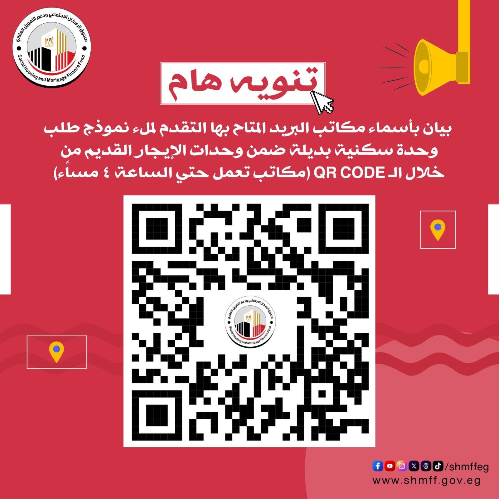 وأضافت مي عبد الحميد، الرئيس التنفيذي لصندوق الإسكان الاجتماعي ودعم التمويل العقاري، أن بعض مكاتب البريد سوف يستمر العمل بها من ٩ صباحًا وحتى ٢ ظهرًا، ويمكن التعرف عليها من خلال الرابط https://bit.ly/4qAFiWV، بينما يستمر العمل في بعض المكاتب الأخرى من ٩ صباحًا وحتى ٤ عصرًا، ويمكن التعرف عليها عبر الرابط https://bit.ly/4qEM4eg، مضيفة أنه تم تخصيص موظفين بكل مكتب بريد عبر منافذ مخصصة لذلك؛ لمساعدة المواطنين في استيفاء نموذج الطلب الإلكتروني.