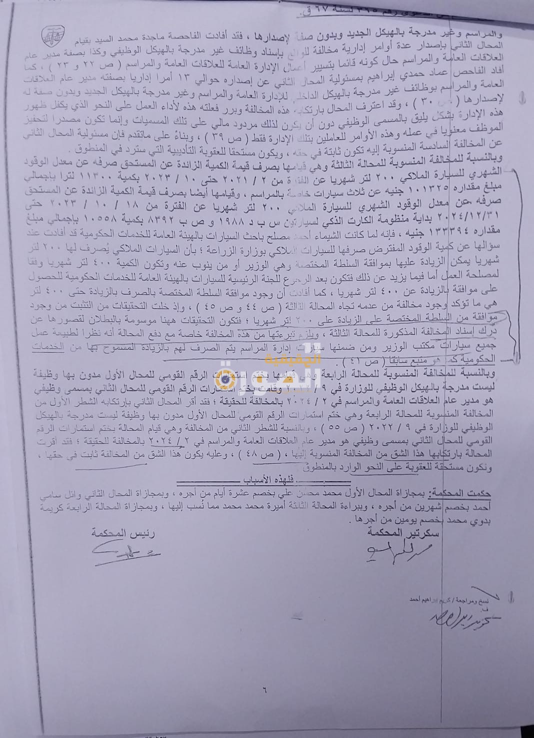 أكدت المحكمة في ختام حكمها أن المسؤولية التأديبية شخصية وتقوم على الإخلال بالواجب الوظيفي، وجاءت العقوبات كالتالي: