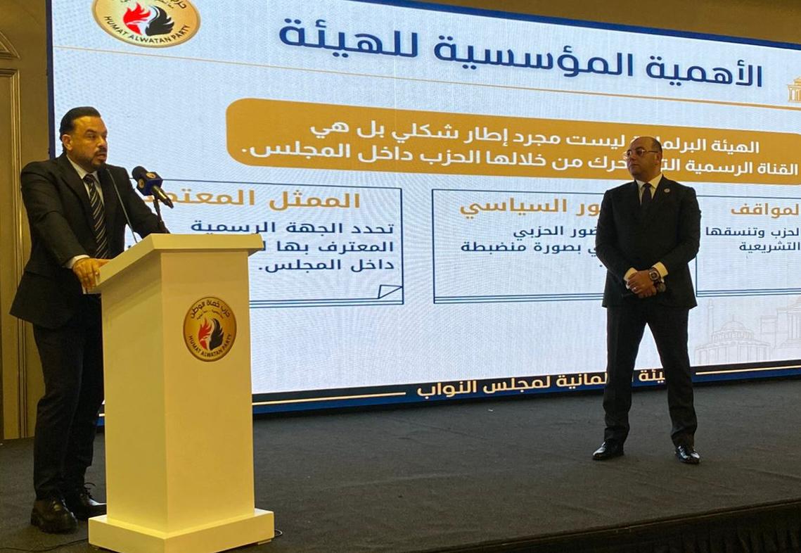 من جانبه قال النائب محمد مجاهد، نائب رئيس الهيئة البرلمانية للحزب ورئيس لجنة الشباب والرياضة بمجلس النواب إن الحزب أصبح اليوم مشاركا في صناعة القرار، وأشار لأهمية العمل بشكل جماعي وان تكون مصلحة الهيئة البرلمانية أولا لنكن لنا التأثير الاول تحت القبة.