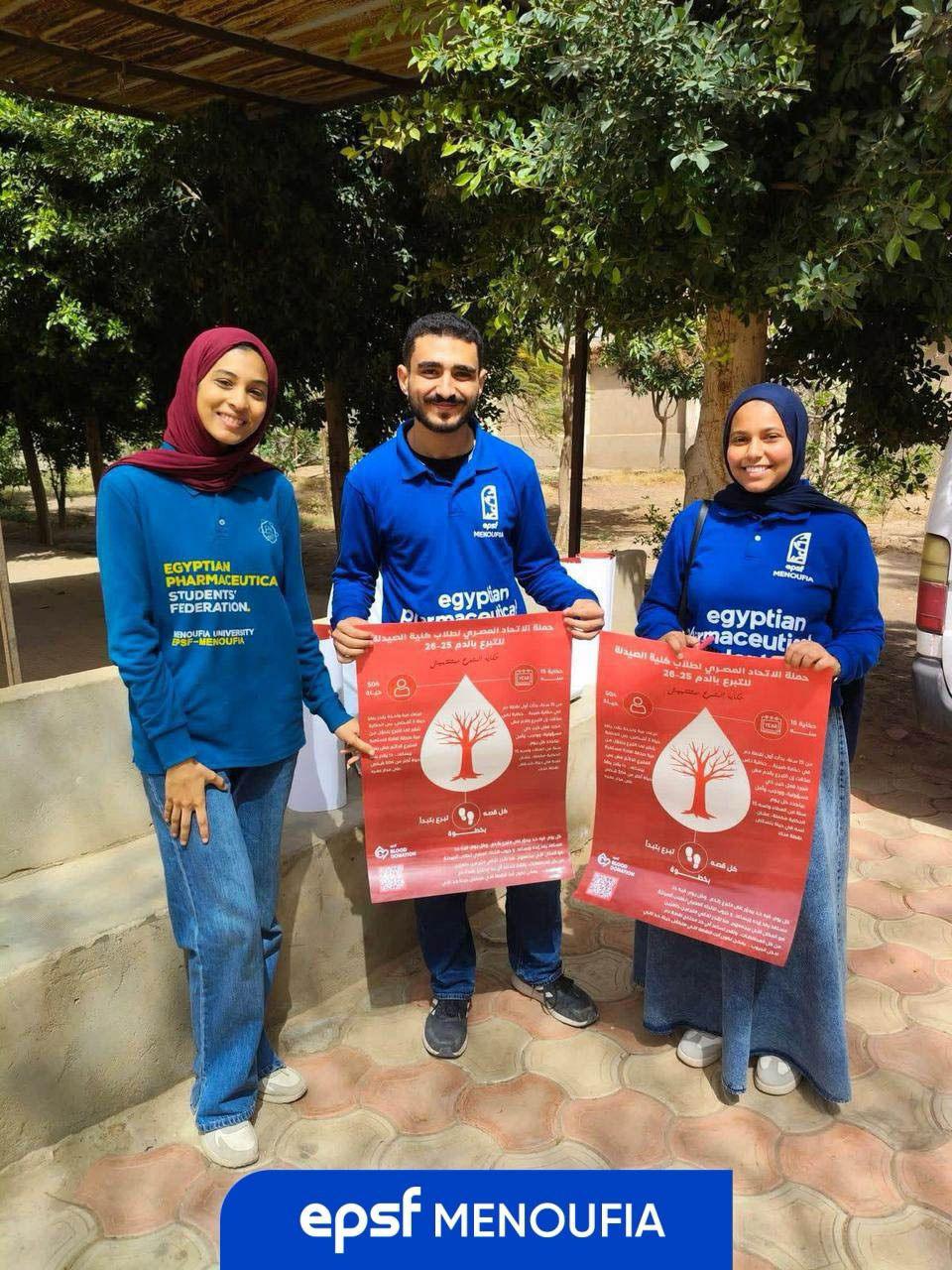 نظم مكتب الاتحاد المصري لطلاب الصيدلة بجامعة المنوفية (EPSF-Menoufia) حملته السنوية للتوعية بأهمية التبرع بالدم في نسختها السابعة عشرة على التوالي، والتي جاءت هذا العام تحت شعار: “أنا متبرع مصري.. أنا متبرع دائم”.