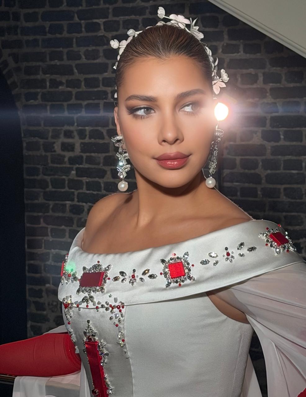 وتألقت أصالة، بإطلالة حصدت إعجاب الكل بفستان تصميم السوري مثنى الحاج علي، وماكياج محمد الحداد،  وكوافير باتريك، والتصوير لمحمد فيفيد.